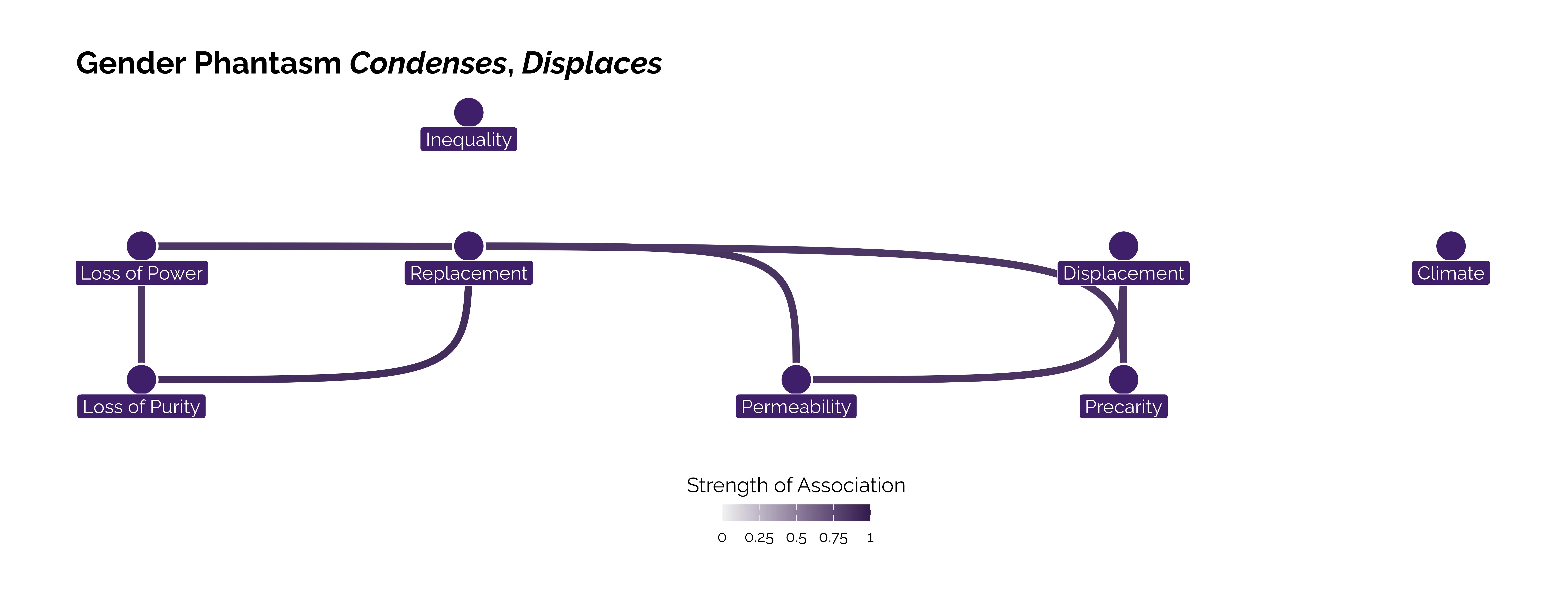 For gender to be identified as a threat to all of life, civilization, society, thought, and the like, it has to gather up a wide range of fears and anxieties—no matter how they contradict one another—package them into a single bundle, and subsume them under a single name. As Freud taught us about dreams, whatever is happening in phantasms such as these involves the condensation of a number of elements, and a displacement from what remains unseen or unnamed.