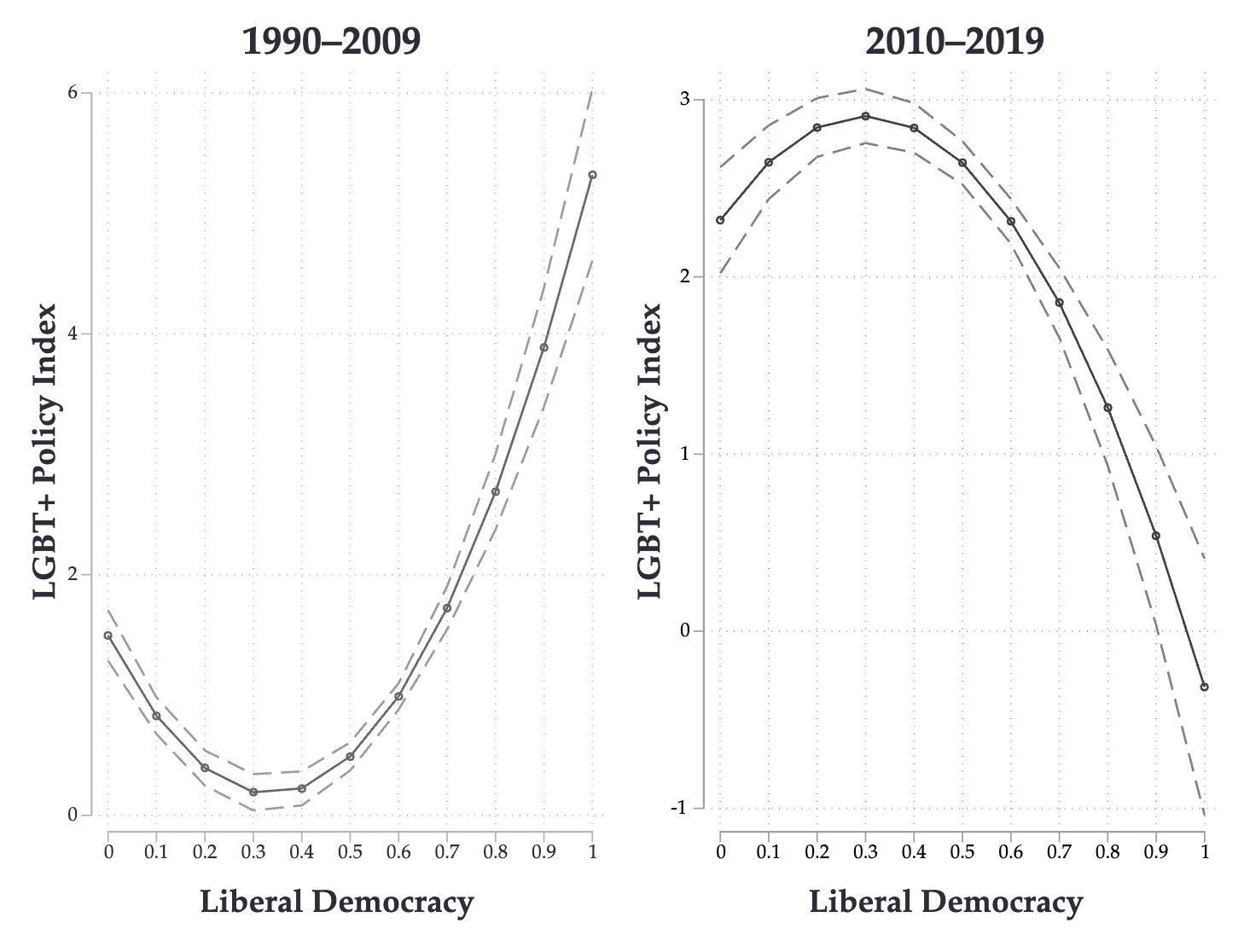 Moreover, in a recent paper, Velasco and colleagues (2024) argue that we should not see LGBTQ+ rights as a downstream consequence of democracy but constitutive of, or inextricably tied to,